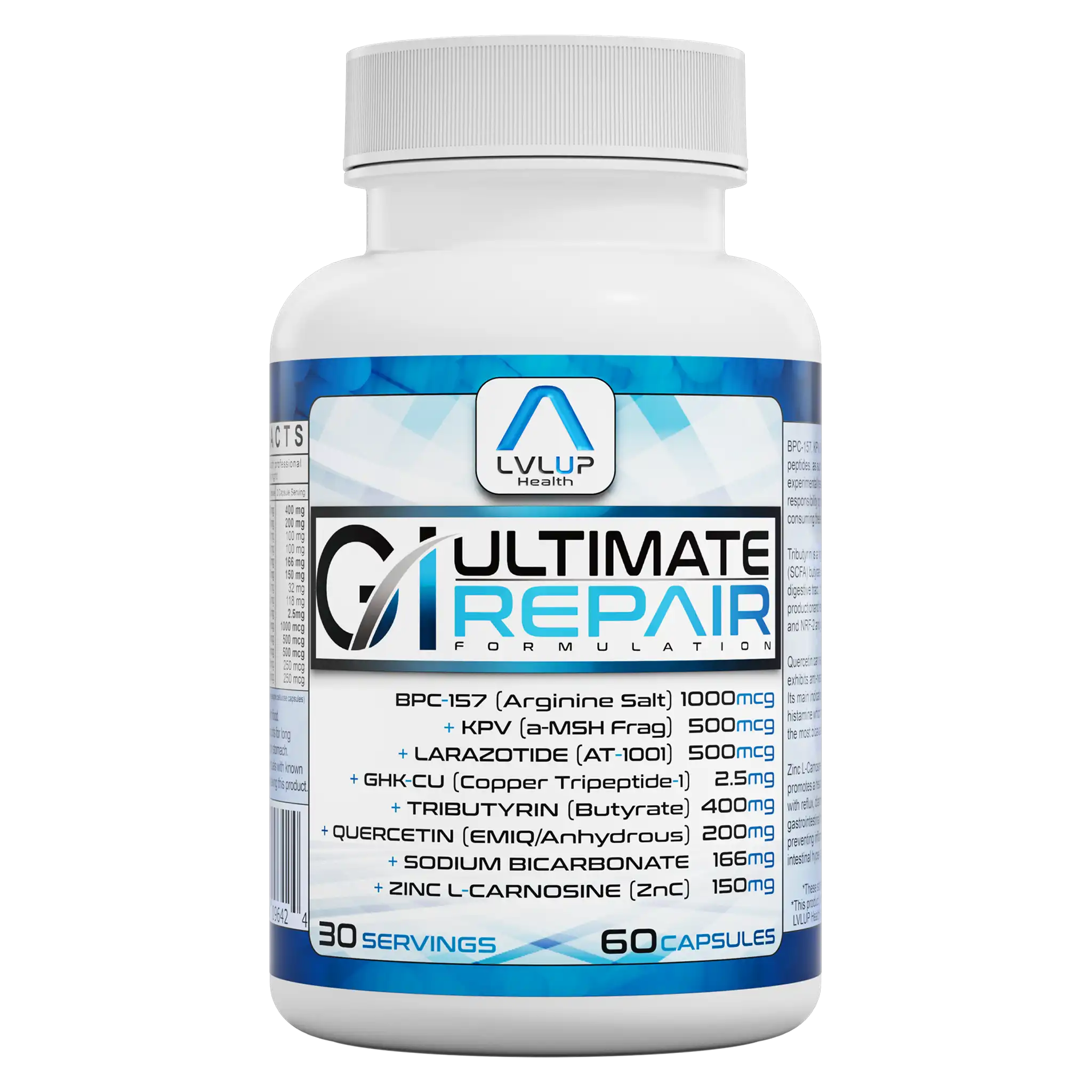 • Ultimate GI Repair: A popular formula that combines peptides like BPC-157, KPV, and Larazotide Acetate with ingredients such as Zinc L-Carnosine, Tributyrin, EMIQ, and Quercetin. Researchers often use it for gut-related experimentation.